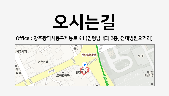 주소 : (61489) 광주 동구 제봉로 41 (학동) 김평남내과 2층